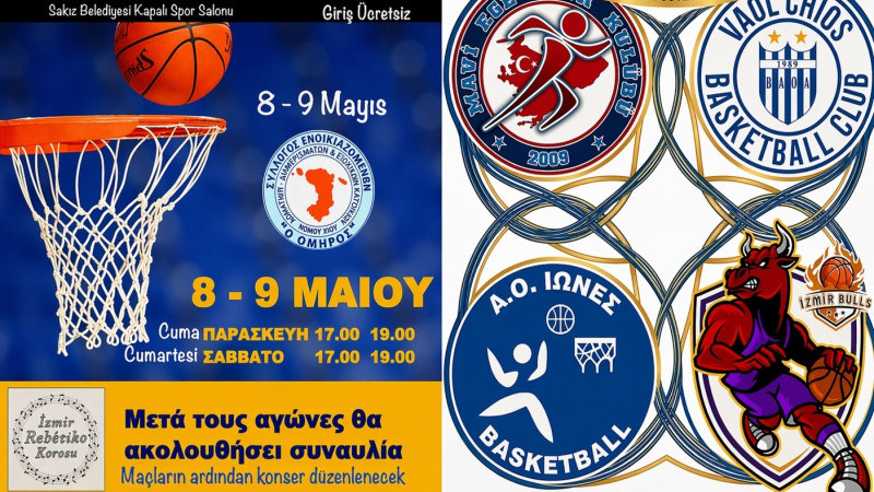 Chios City Kapalı Spor Salonu’nda gerçekleşecek organizasyonda, Sakız’ın VAOL ve IONES takımları ile İzmir’den İzmir Bulls ve Mavi Ege Spor ekipleri basketbol dostluk maçlarında karşı karşıya gelecek. Her iki gün saat 17.00’de başlayacak karşılaşmaların ardından sahne bu kez müziğe bırakılacak. Şef Berkan Atılgan yönetimindeki 20 kişilik İzmir Rebetiko Korosu, geceye ezgileriyle eşlik edecek. 12 Mart’ta Sakız’da düzenlenen “Köklerin Dönüşü” konseriyle hafızalarda yer eden koro, Yunanca şarkılarla bir kez daha Ege’nin ortak kültürünü notalara dökecek. 9 Mayıs Cumartesi günü gerçekleştirilecek ödül töreninin ardından festival, bu özel konserle final yapacak.